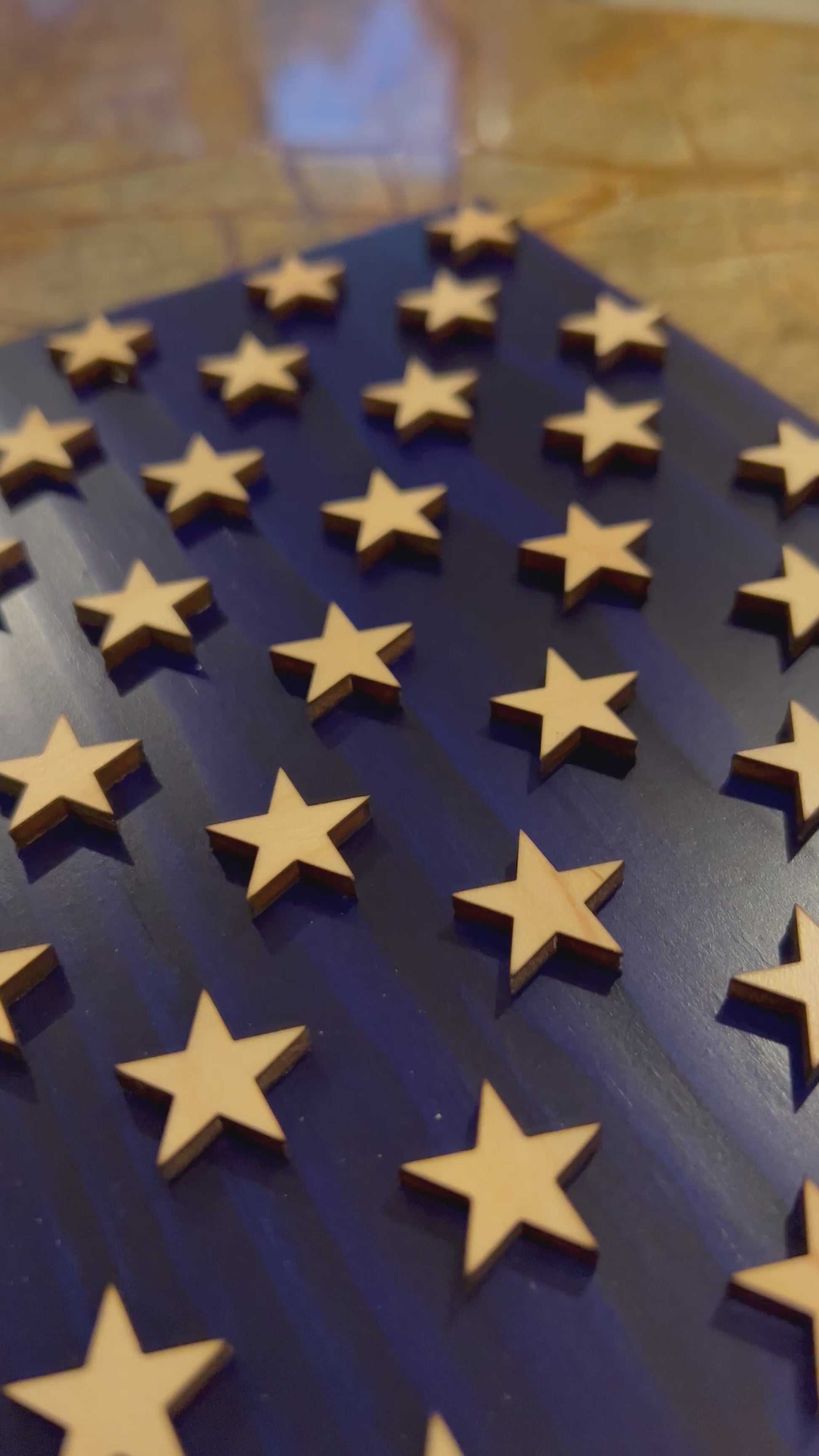 Introducing our handcrafted Wood American Flag, proudly made in the USA. Measuring 13" by 24", this high-quality flag is perfect for interior display and comes with a convenient hanger on the back. Reinforced with strong wood strips, it ensures a seamless and attractive look. Show your patriotism with style.